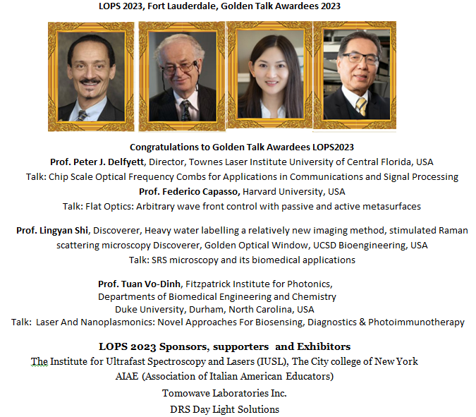 "It was a pleasure participating in the LOPS 2021 conference, and I’d like to thank Prof. Alfano and all organizers for the invitation and for putting together such a complex worldwide webinar. The speakers were outstanding, the presentations were excellent, and the broad range of optics and photonics topics covered was truly stimulating. Congratulations for a well-planned conference."